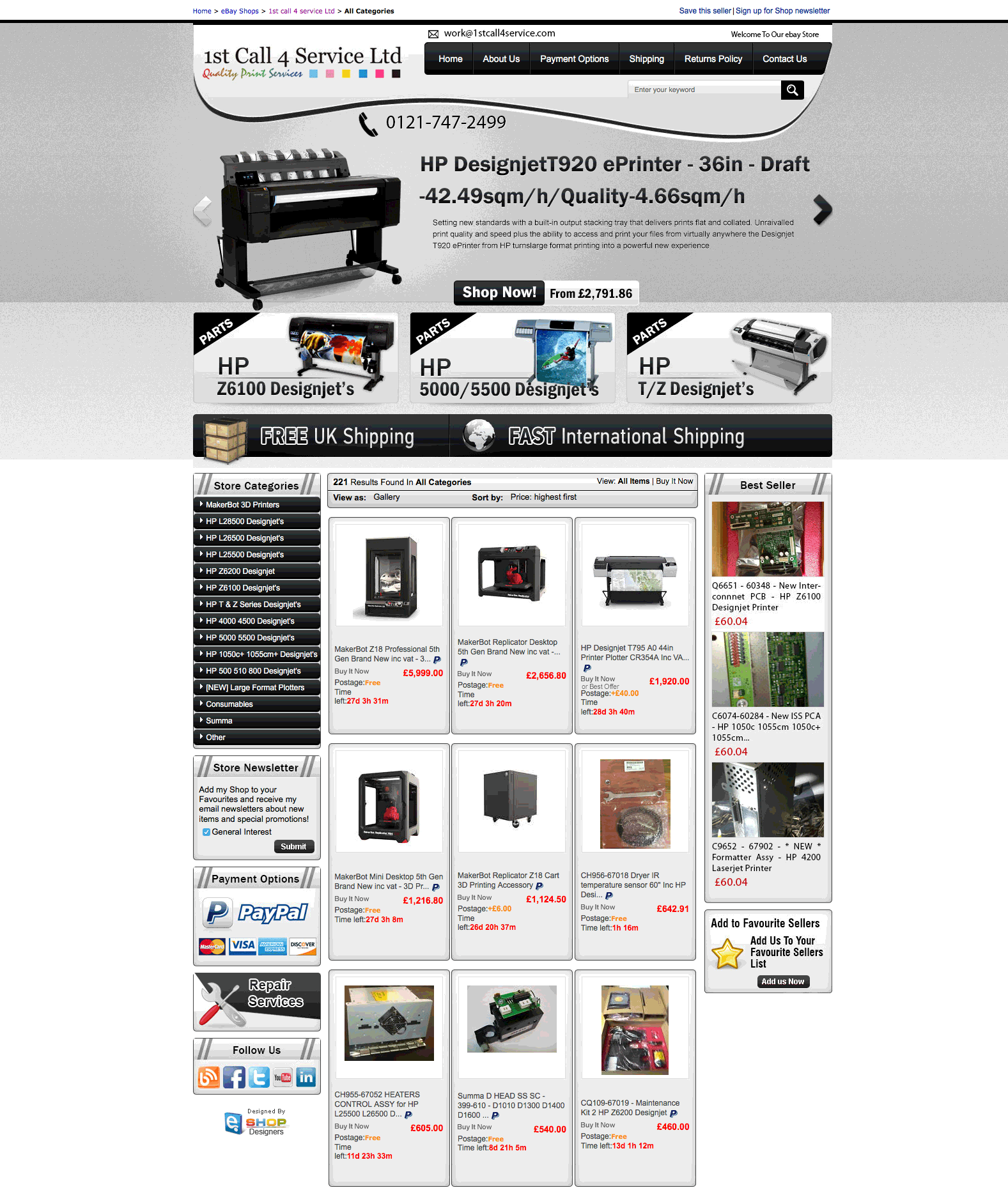 1st Call 4 Service is a Quality Print Services. We develop closely with their team an eBay store design.