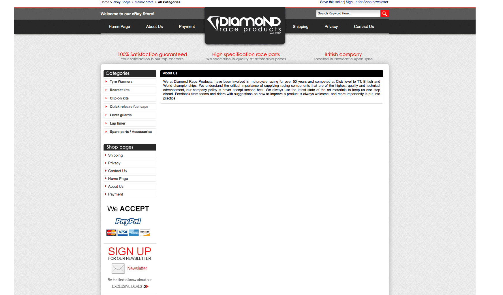Diamond Race Products has been involved in motorcycle racing for over 50 years and competed at Club level to TT, British and World championships. We understand the critical importance of supplying racing components that are of the highest quality and technical advancement, our company policy is never accept second best. We always use the latest state of the art materials to keep us one step ahead. Feedback from teams and riders with suggestions on how to improve a product is always welcome, and more importantly is put into practice.