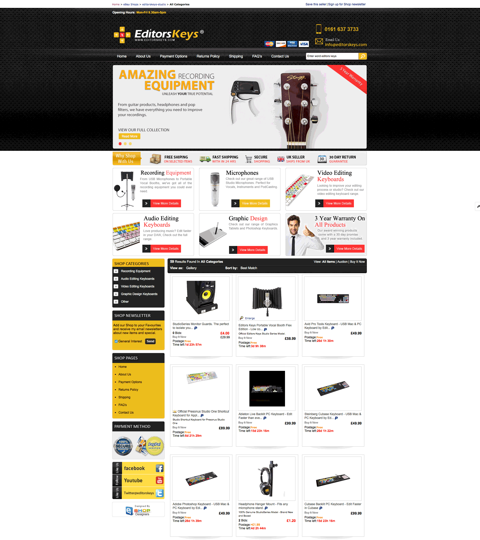 We are pleased to be able to work together with Editorskeys in eBay journey. eShopDesigners designed the eBay store design, custom page design and item listing template.