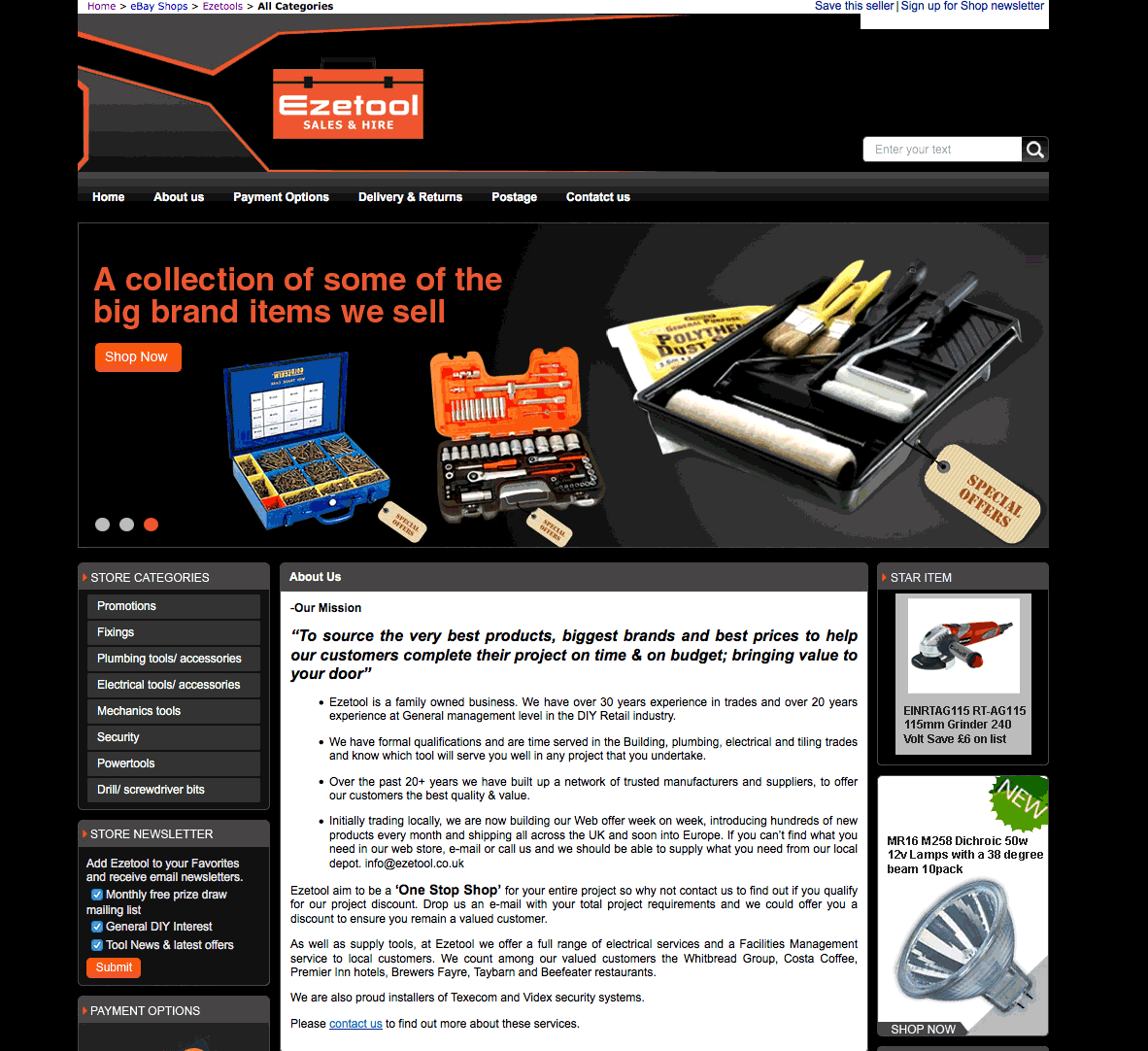 eShopDesigners help them build their eBay presence with a bespoke design of the store and 5 custom pages.