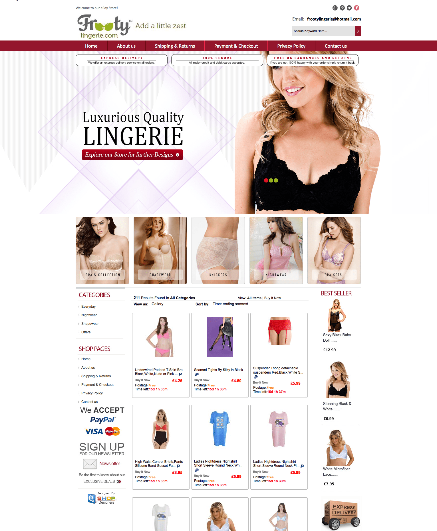 Frooty Lingerie is a family run business with many years experience in the lingerie business. We strive to source and deliver quality garments at affordable prices, we do not cut corners in the quality and feel that is vitally important that the customer is both satisfied and happy with the garments and service!