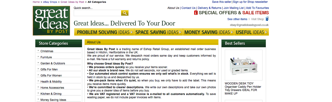 Great Ideas By Post is a trading name of Eshop Retail Group, an established mail order business based in Hitchin, Hertfordshire in the UK.
