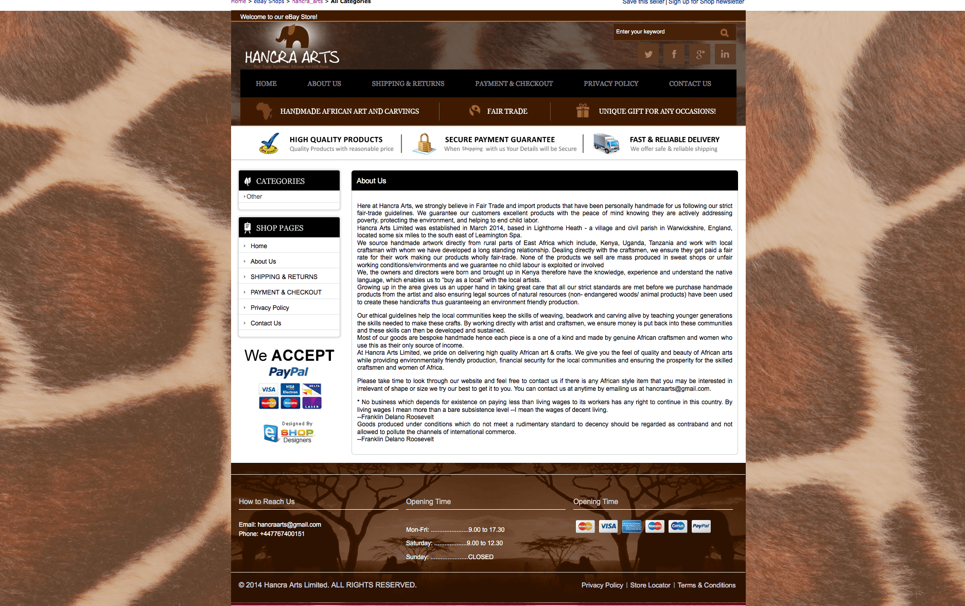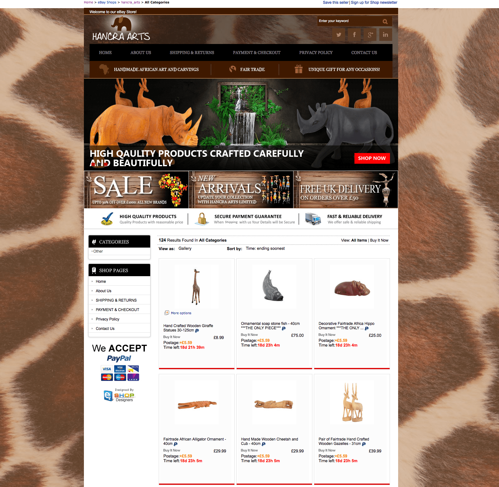 eShop Designers with Hancra arts work closely to achieve this awesome design which suits their requirements. eBay store, custom pages and item listing template are the result.