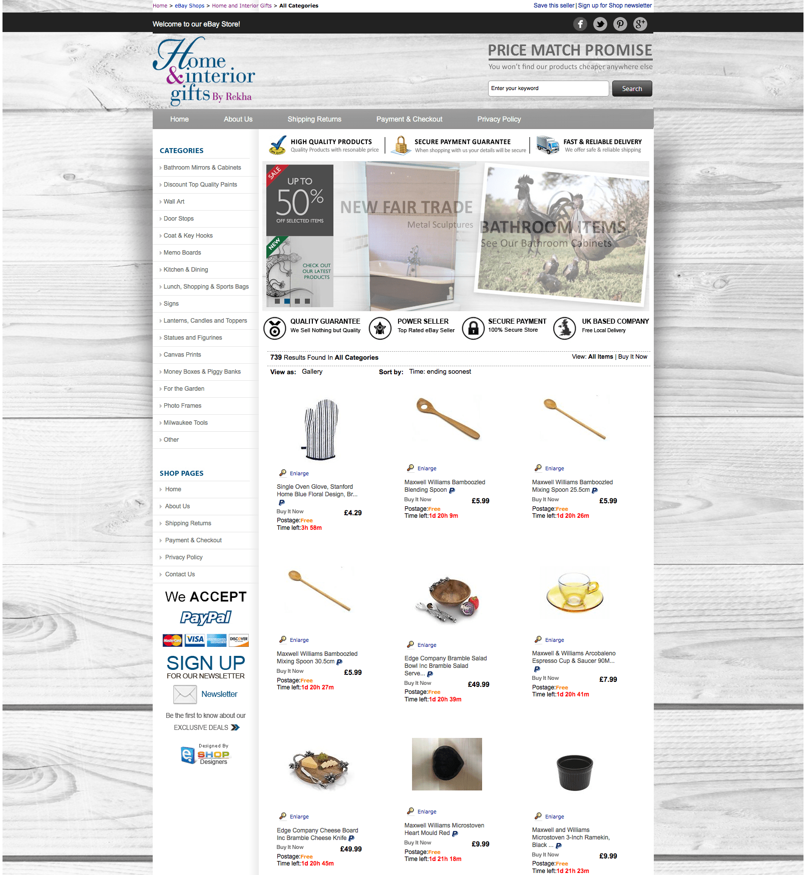 Home and Interior Gifts wanted to have a classy and stylish eBay store front. The design speaks for itself.