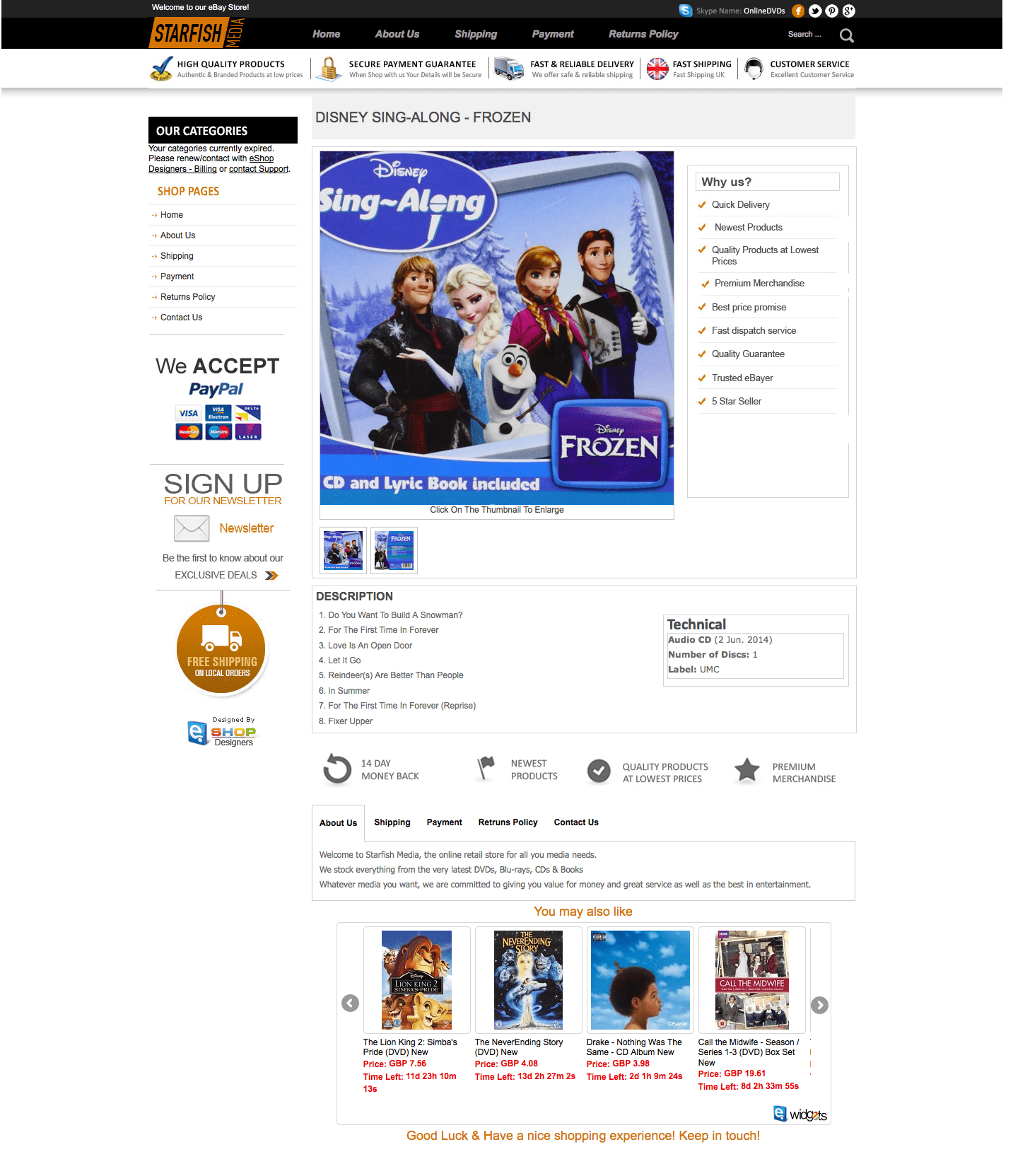 eShopDdesigners design your eBay store front, custom pages and item listing template.