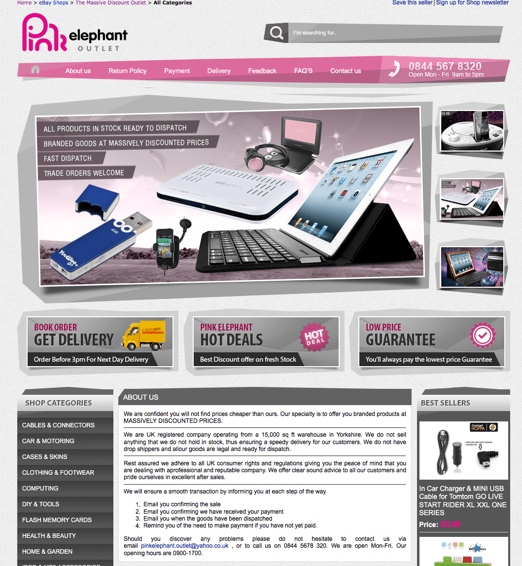 “Pink elephant are confident you will not find prices cheaper than ours. Our specialty is to offer you branded products at MASSIVELY DISCOUNTED PRICES.