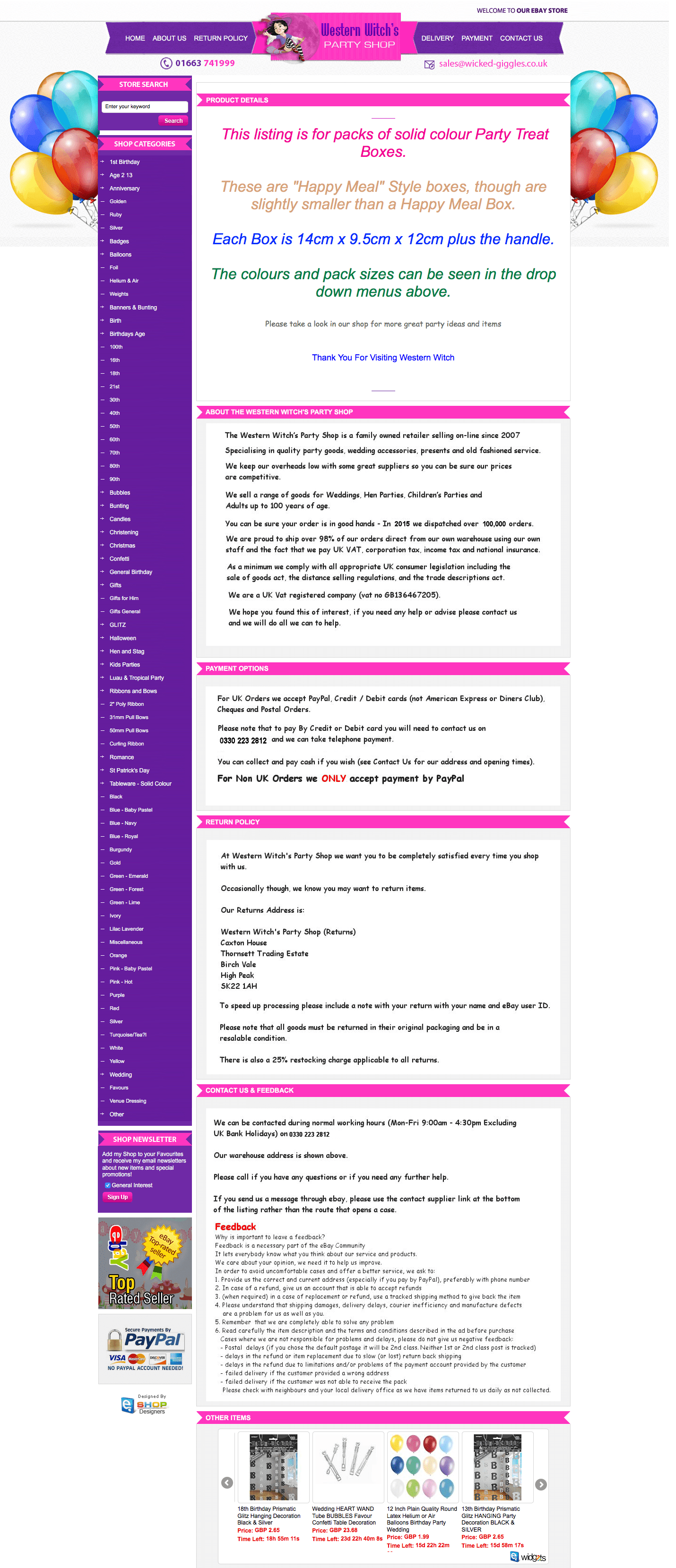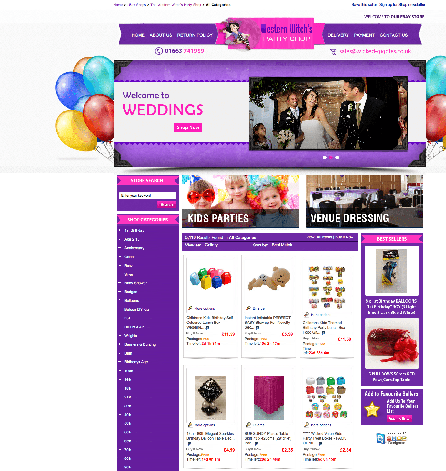 eShop Designers are really pleased to help Western Witch’s Party Shop to release the online presence trough eBay store and listing template design.
