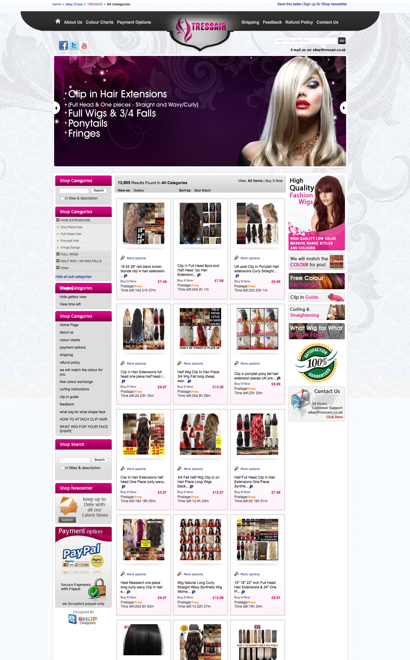 TRESSAIR has a extensive experience in eCommerce. The eBay store and template are awesome designed and loads of custom pages are added to give to customer the best guide friendly advice.