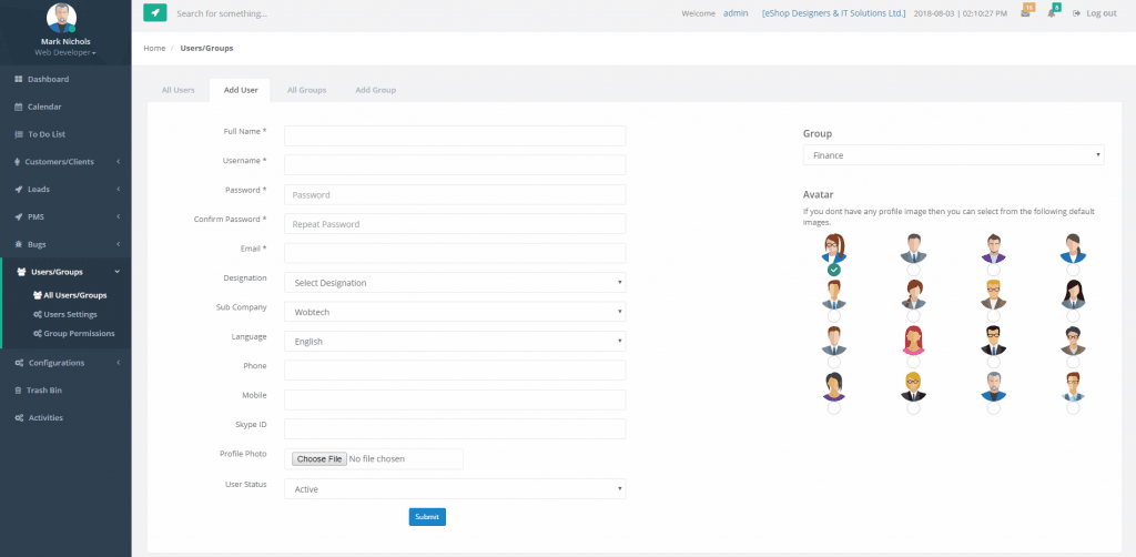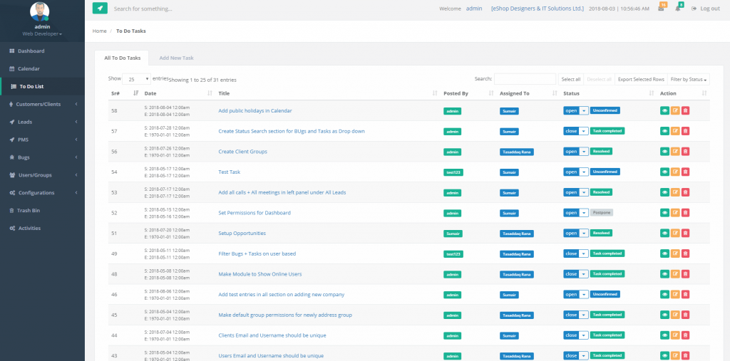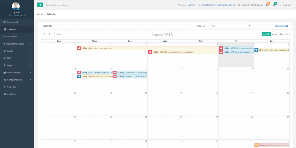 eShop DesignersCalendar- View and manage invoices due, Tasks, Bugs, Meeting, Calls