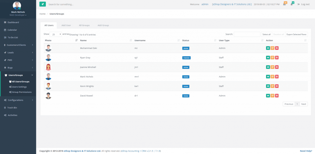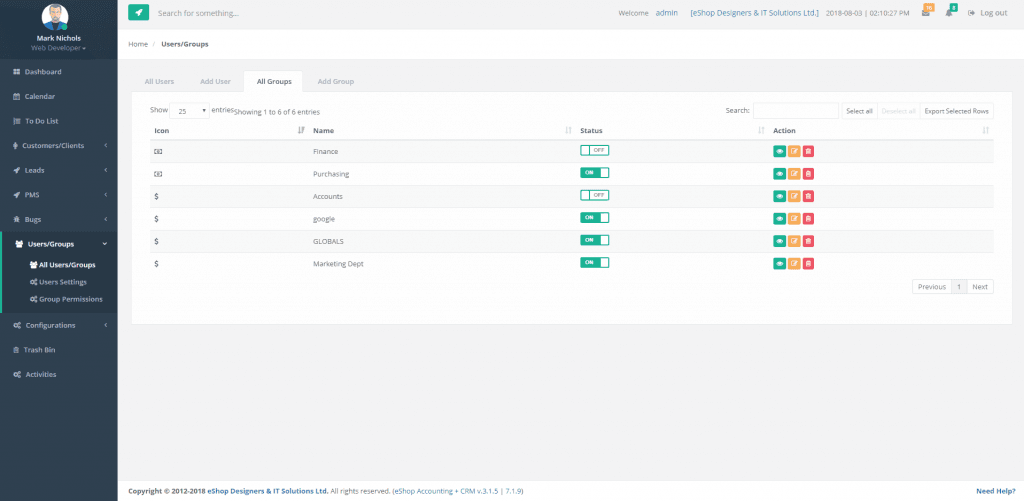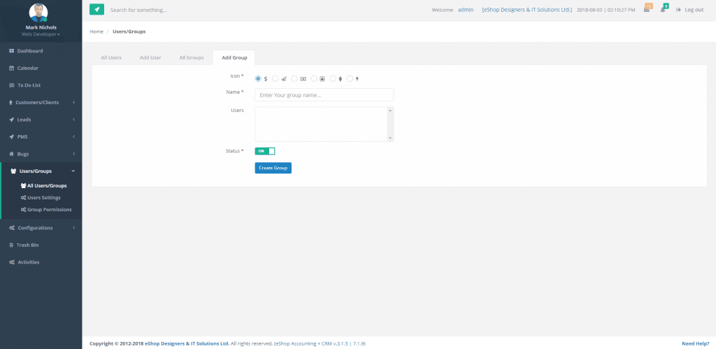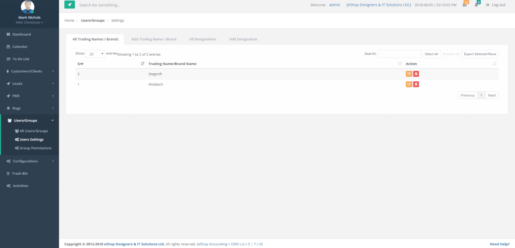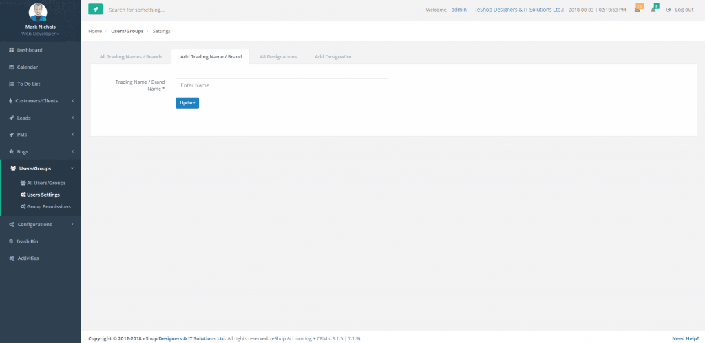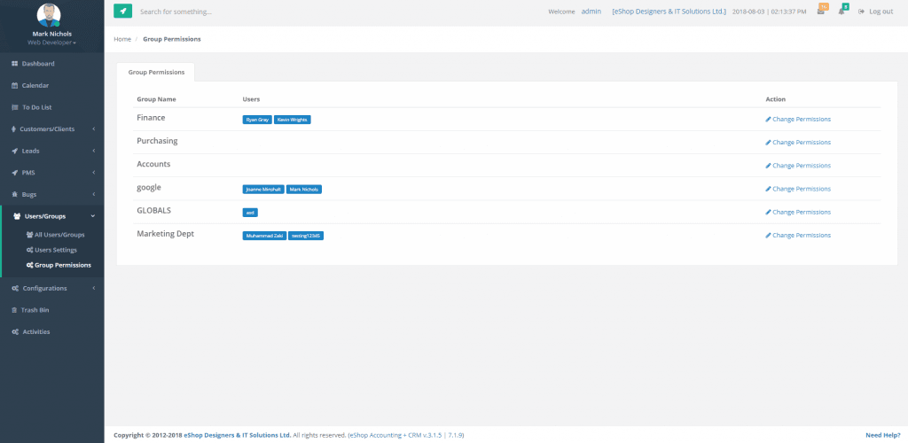 eShop DesignersUsers/Groups- View and manage all user groups, User settings (brands, designations, permissions), Group permissions. You can also view staff accounts.